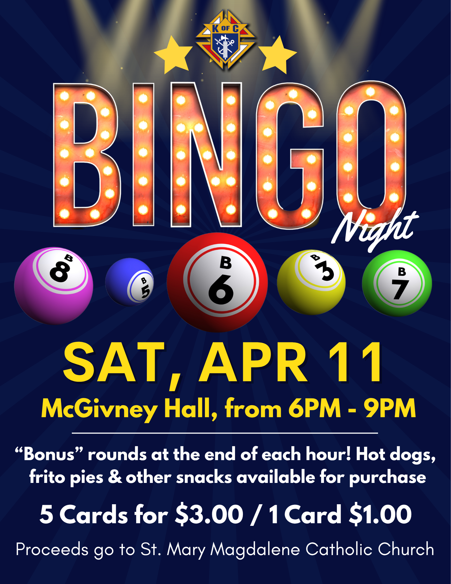 Saturday, April 11: KofC Bingo Night